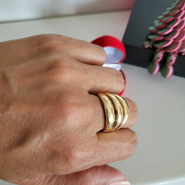 Anillo tripe talla 8 , Baño simple dorado